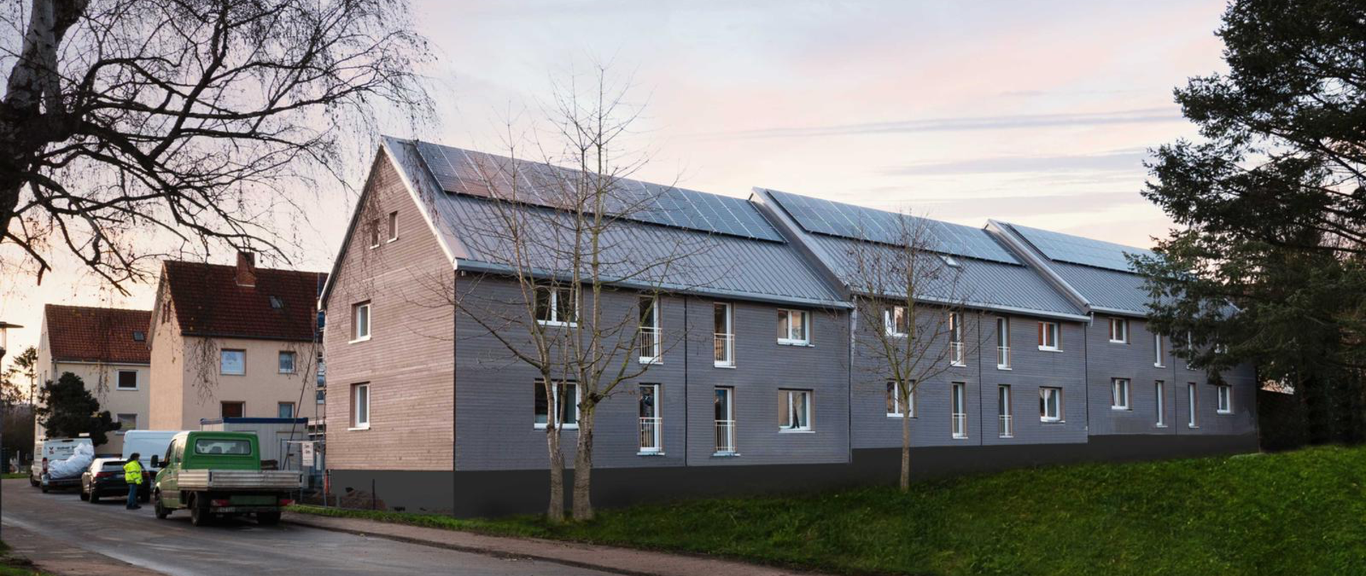 Der Hamelner Wohnblock aus den 1930er Jahren, bestehend aus drei Gebäudeteilen mit je zwei Stockwerken, war zuvor stark sanierungsbedürftig. In dem Mehrfamilienhaus sind inzwischen fast alle der zwölf Wohnungen vermietet. Seit der Sanierung erreicht das Gebäude den klimaneutralen NetZero-Standard: Eine Photovoltaikanlage auf dem Dach erzeugt über das Jahr gerechnet so viel Energie, wie für Heizung, Warmwasser und Strom benötigt wird.